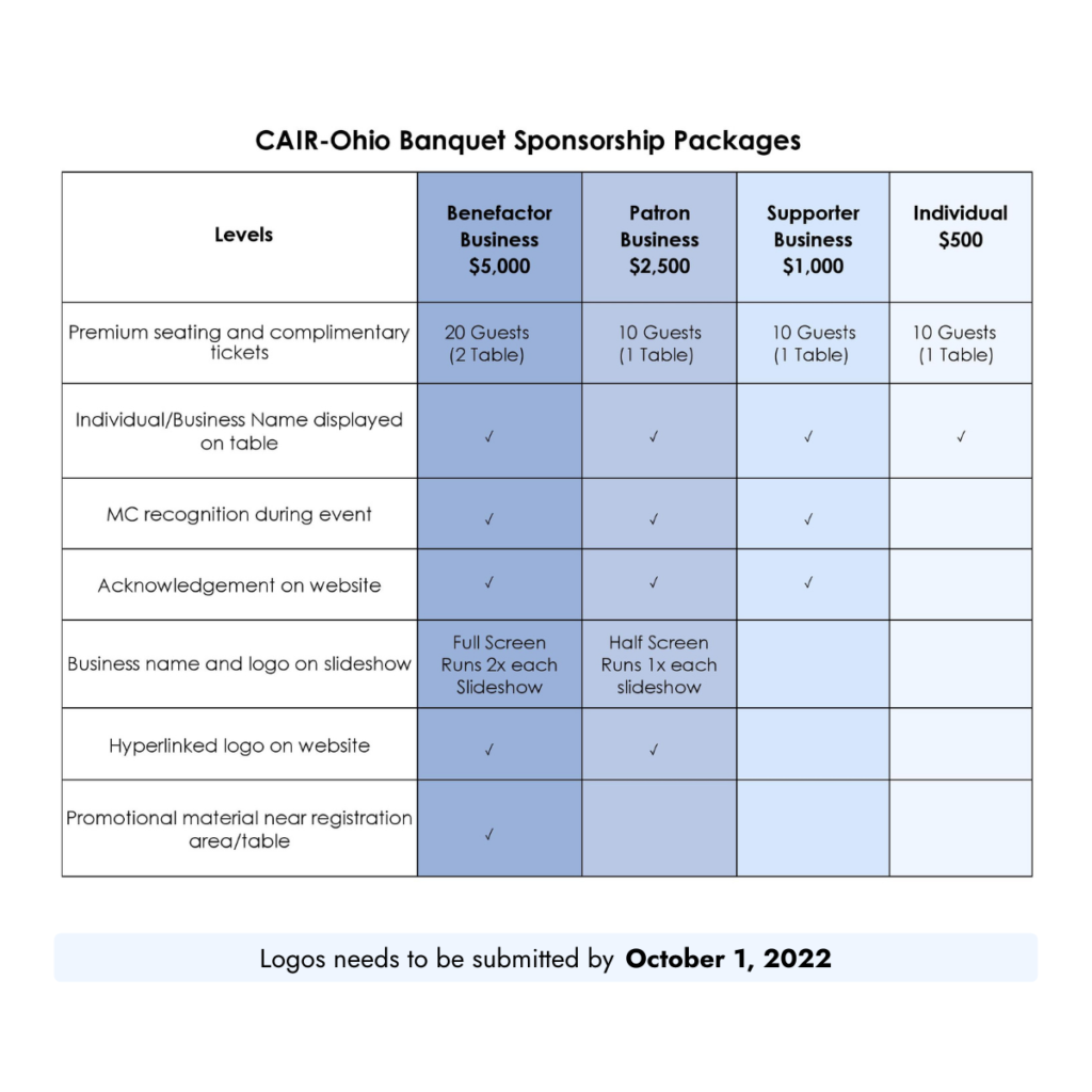 If you are interested in purchasing a table or for sponsorships, contact Sarah Mazouz at smazouz@cair.com | 614-219-7330