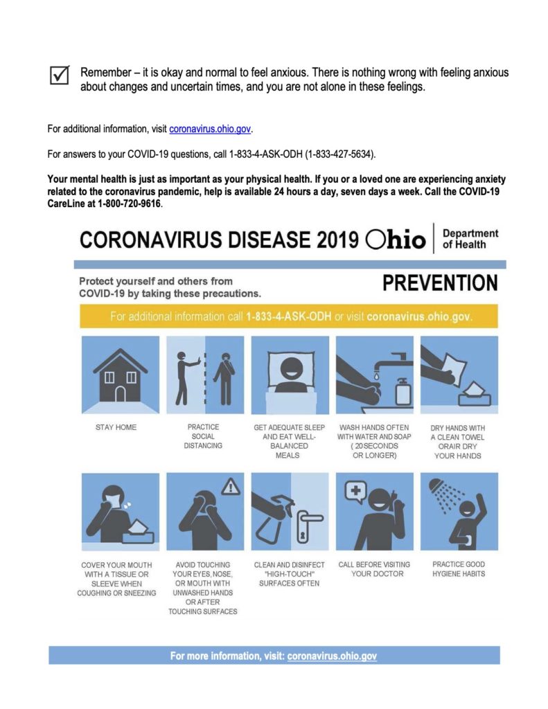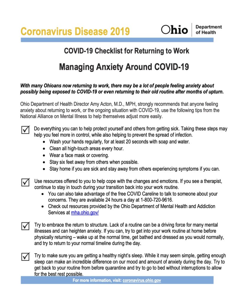 Managing Anxiety Managing anxiety around covid-19 This information was released by the Ohio Department of Health on April 28, 2020. For additional information, please visit the Ohio Covid Portal. Back to COVID-19 resource page